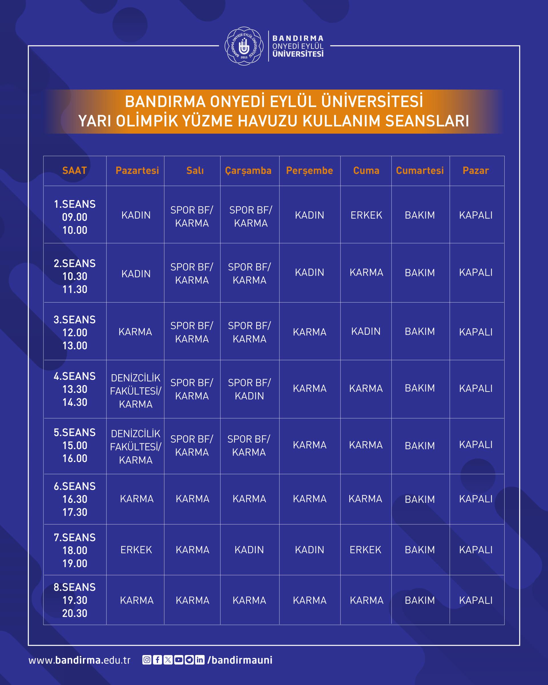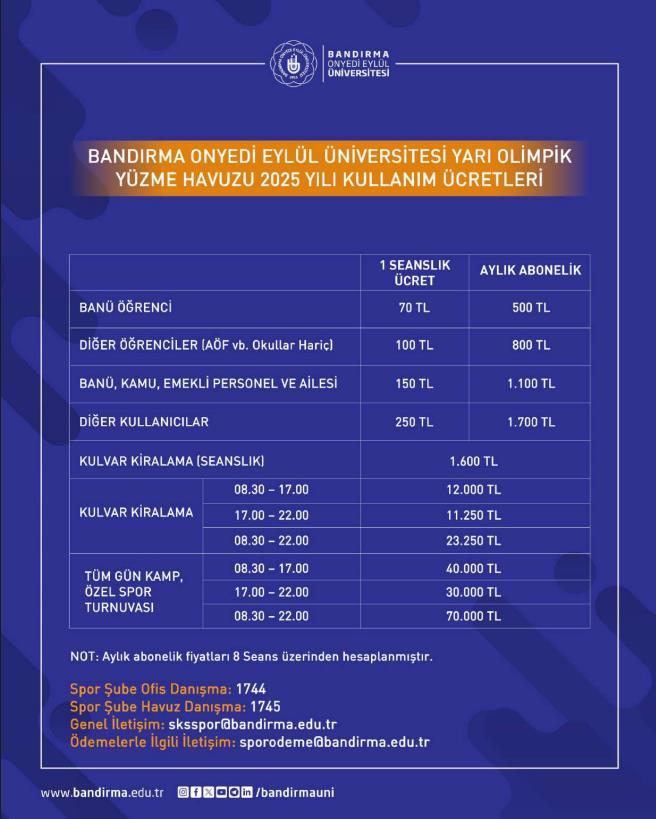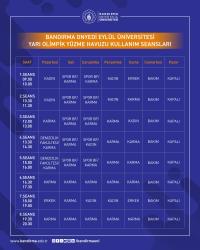 Üniversitemiz Yarı Olimpik Yüzme Havuzu 23/10/2025 tarihinden itibaren akşam saatlerinde hizmet verecektir.