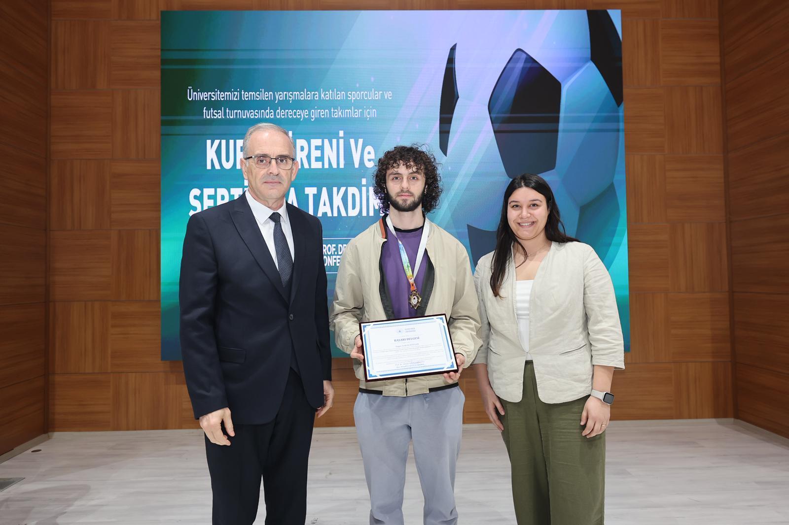 Üniversitemizi başarıyla temsil eden tüm sporcularımız ile kurum personellerimiz sahneye davet edilerek, alkışlar eşliğinde ödül ve sertifikalarını alırken program coşkulu anlara sahne oldu.
