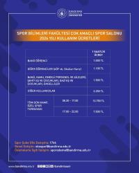 Kullanım planlaması, uygunluk durumuna göre yapılmakta olup, kullanıcı gruplarına göre belirlenen ücret tarifesi aşağıda belirtilmiştir.